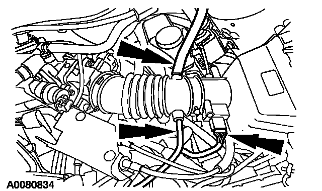 3. Disconnect the mass air flow (MAF) sensor and the breather tubes.