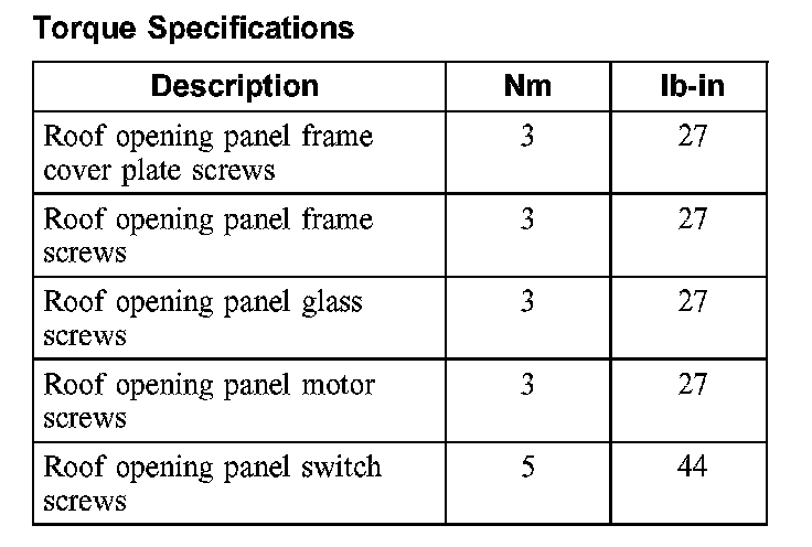 Torque Specifications: