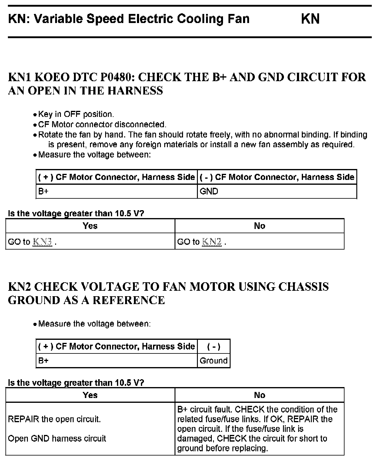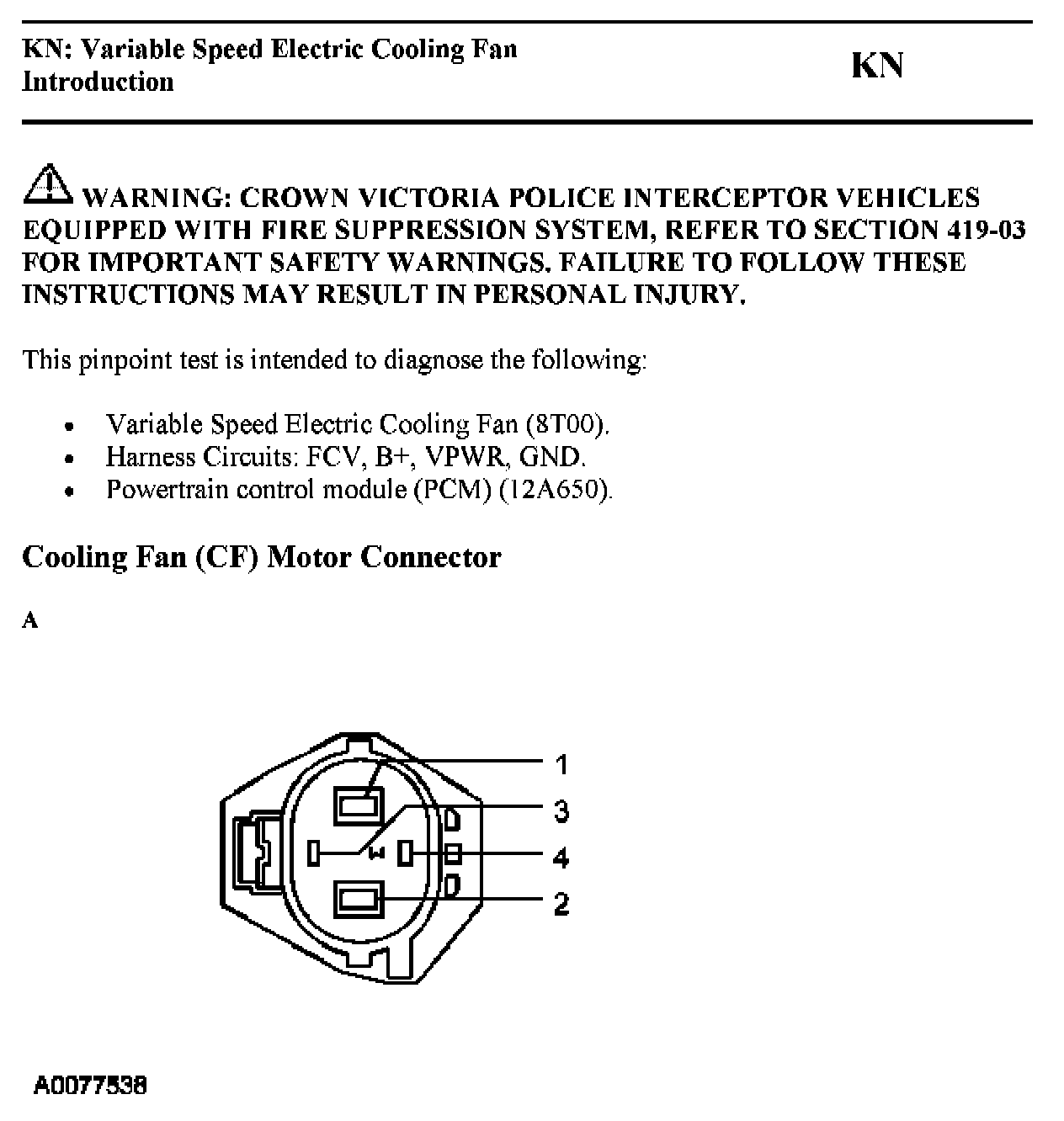 PINPOINT TEST KN: VARIABLE SPEED ELECTRIC COOLING FAN