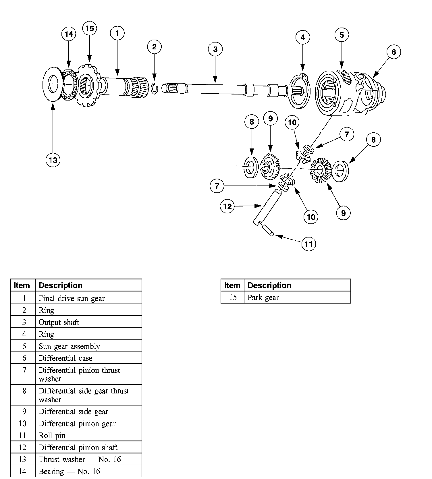 1. Remove the No. 16 final drive gear front thrust bearing.