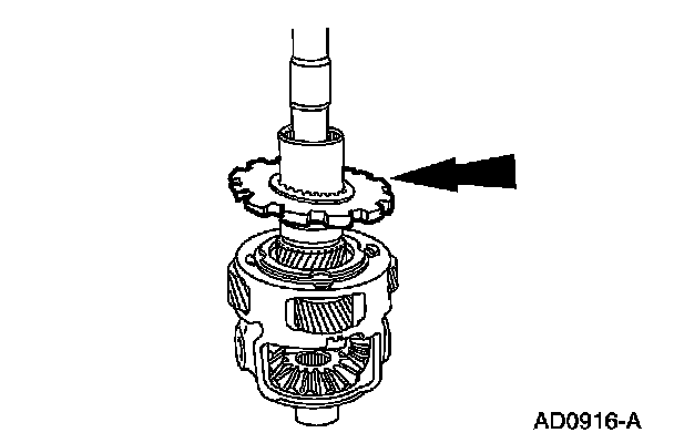 1 Install the differential side gear and differential side gear thrust washer.