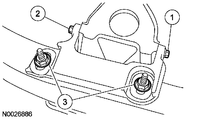 5. CAUTION: The bolts must be tightened in the sequence shown, or damage to the crossmember bracket may occur.