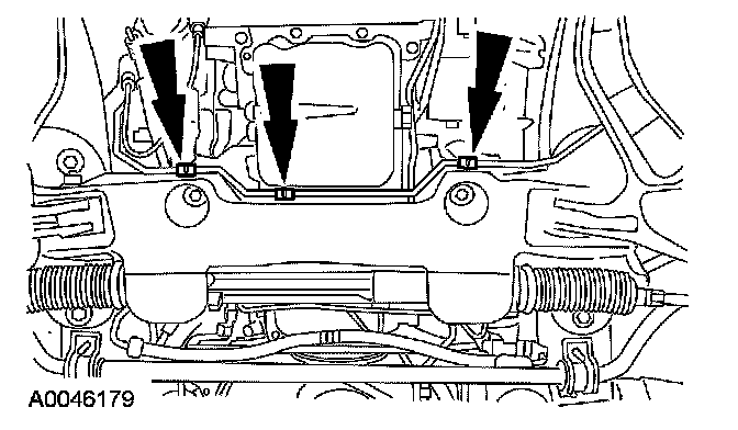 18. Release the brake line from the retaining clips at the rear of the number 2 crossmember.