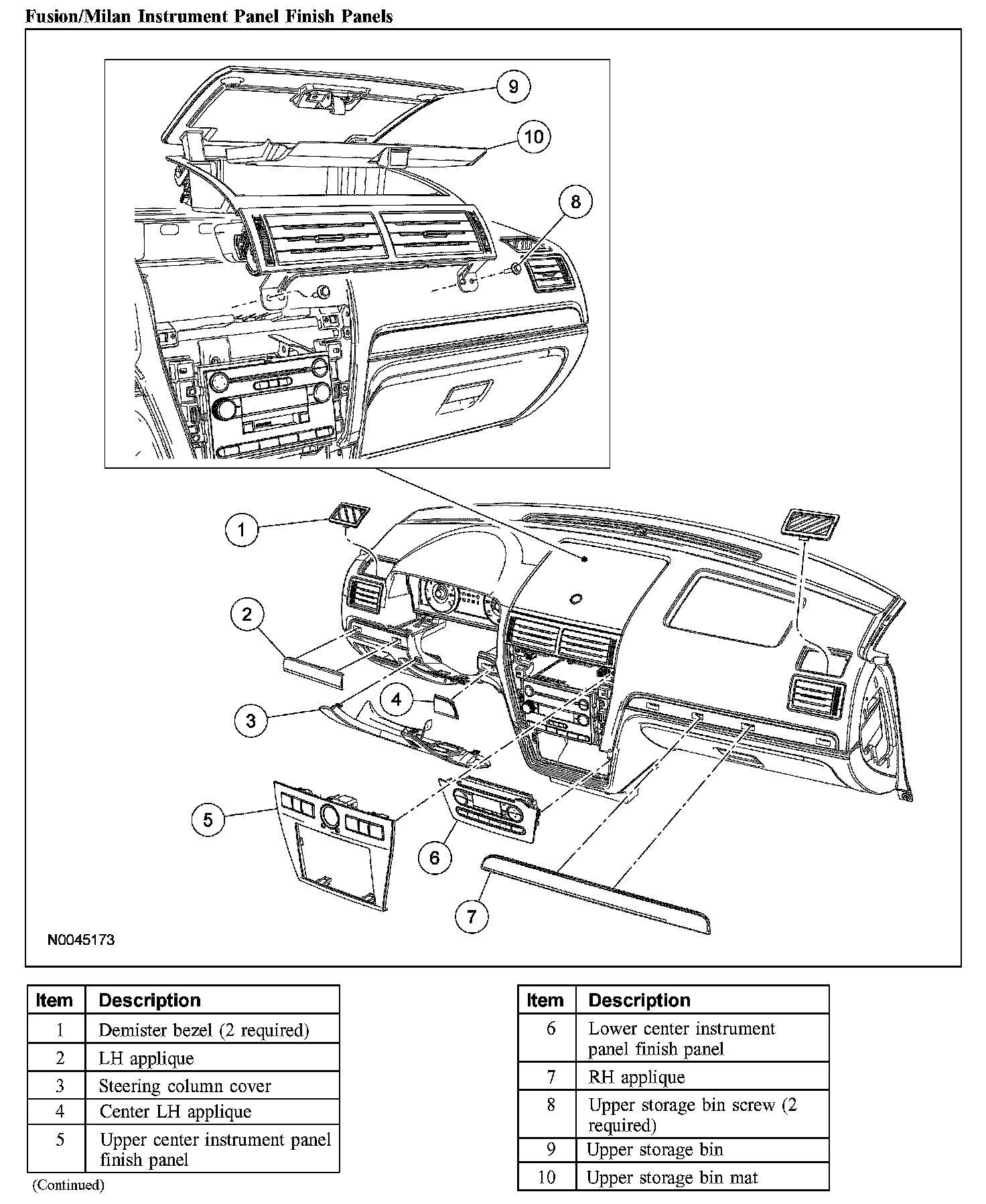 Instrument Panel Finish Panels: