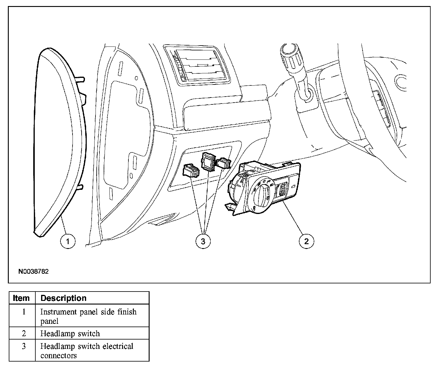 2. NOTE: The headlamp switch is removed by pushing from behind.