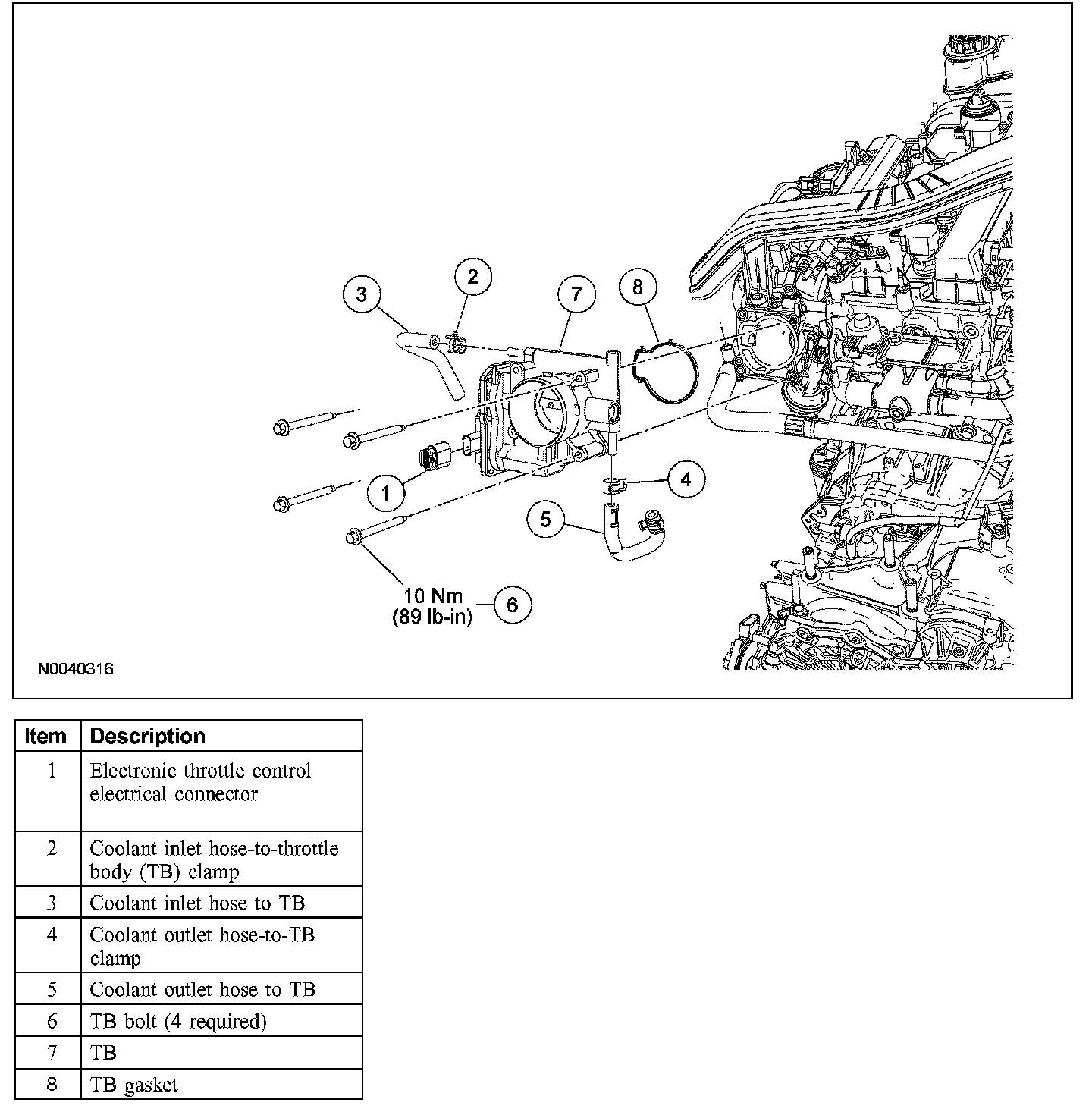 CAUTION: Throttle body bore and plate area have a special coating and cannot be cleaned, or possible damage to the throttle body can occur.