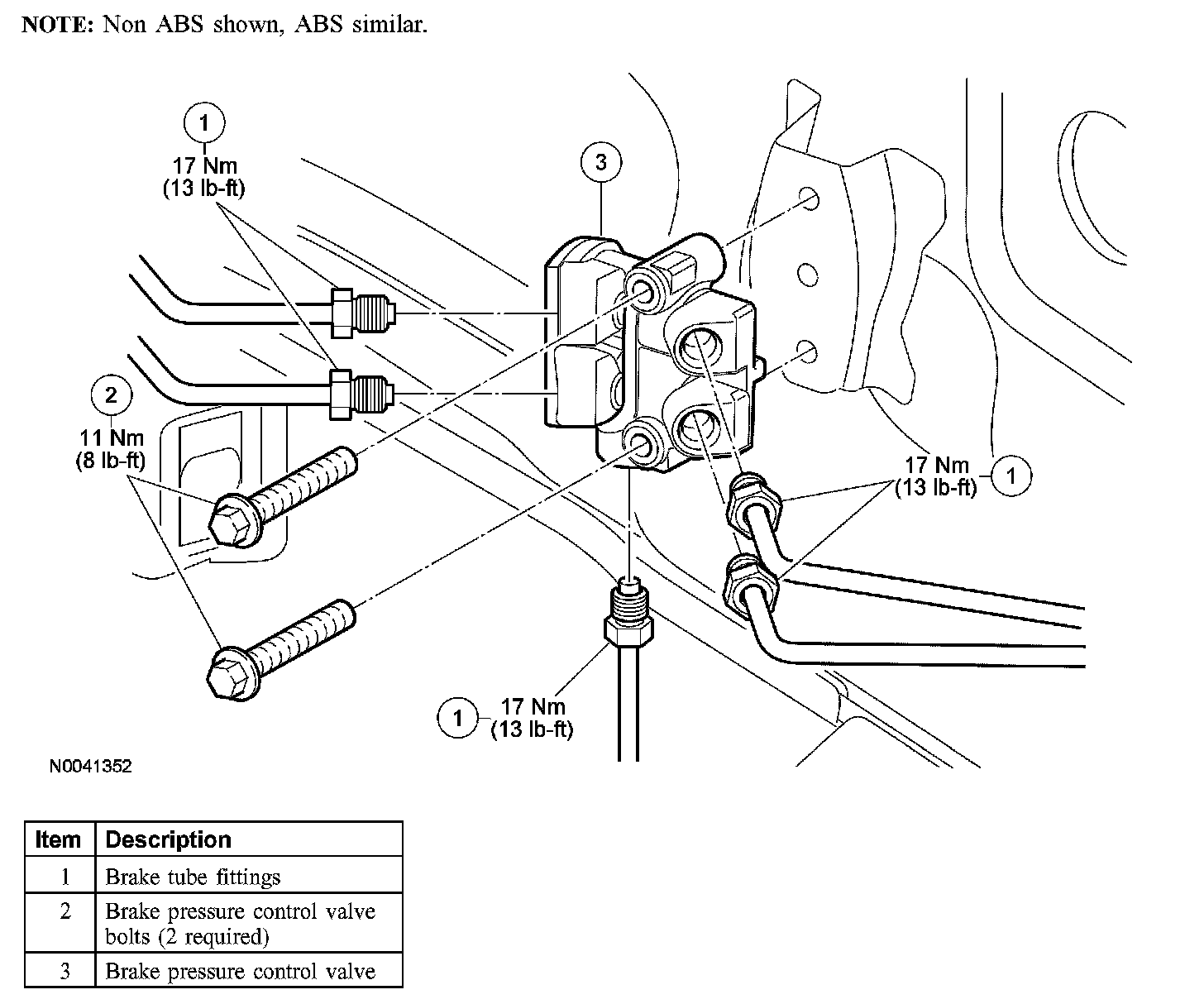 4. Disconnect the brake tube fittings, plug the tubes and the ports on the brake pressure control valve.