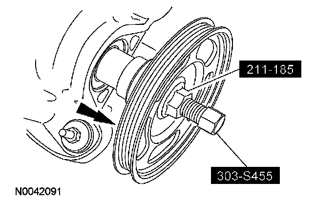 4. Using the special tool, remove the coolant pump drive pulley.