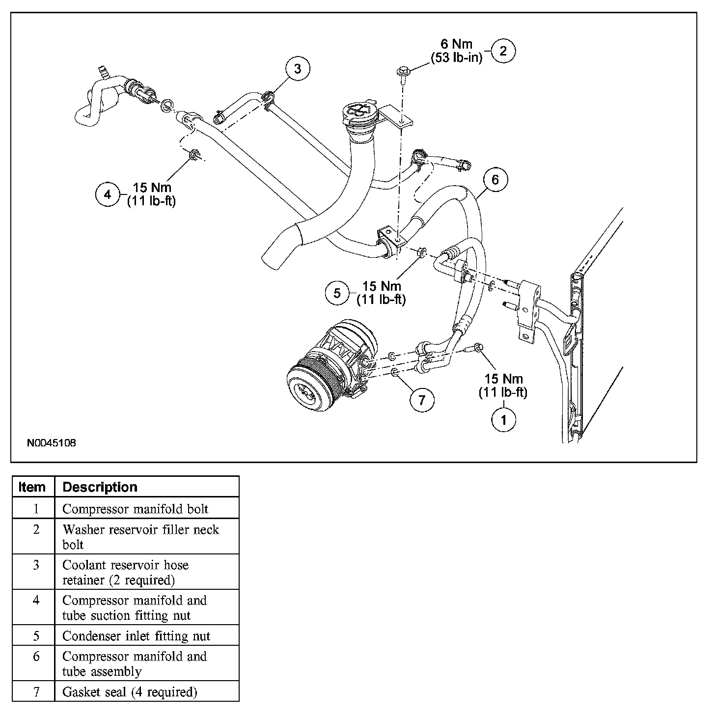 9. Remove the compressor manifold and tube assembly.