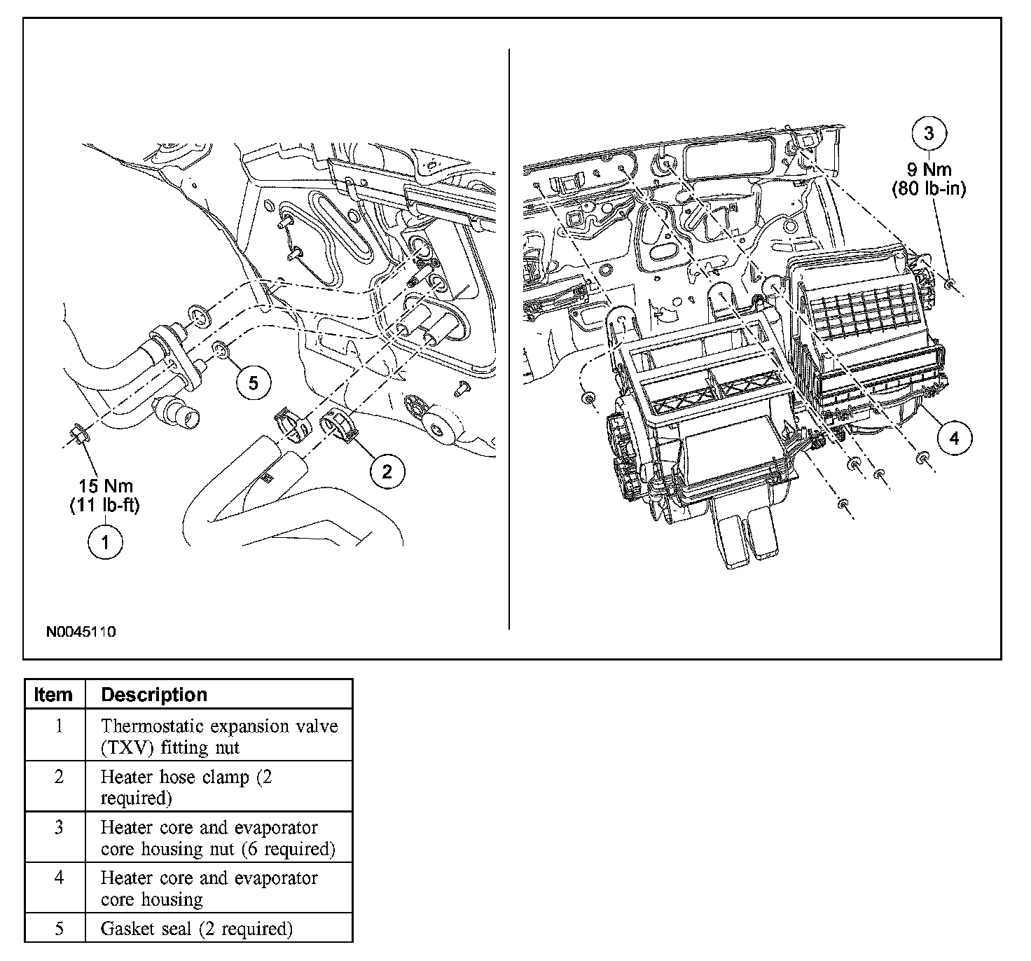 8. Remove the 6 heater core and evaporator core housing nuts.