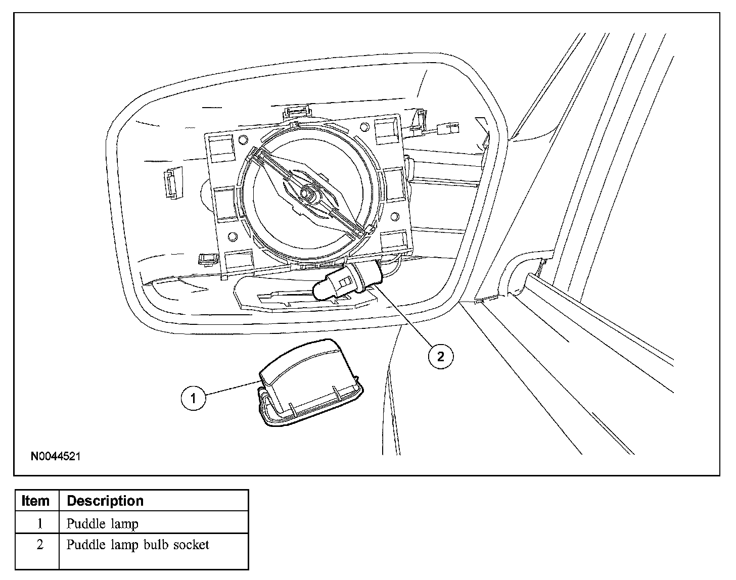 3. NOTE: The LH puddle lamp bulb socket is rotated clockwise to remove and the RH puddle lamp bulb socket is rotated counterclockwise to remove.