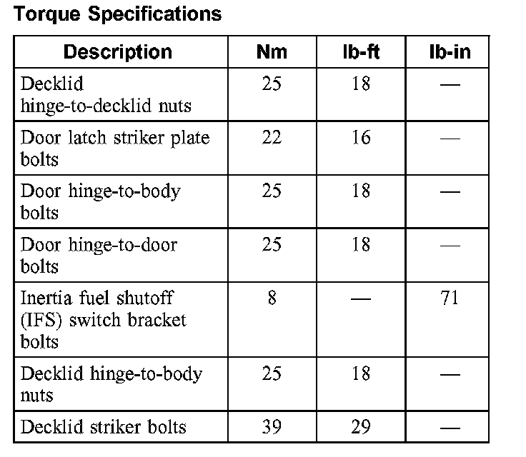 Torque Specifications: