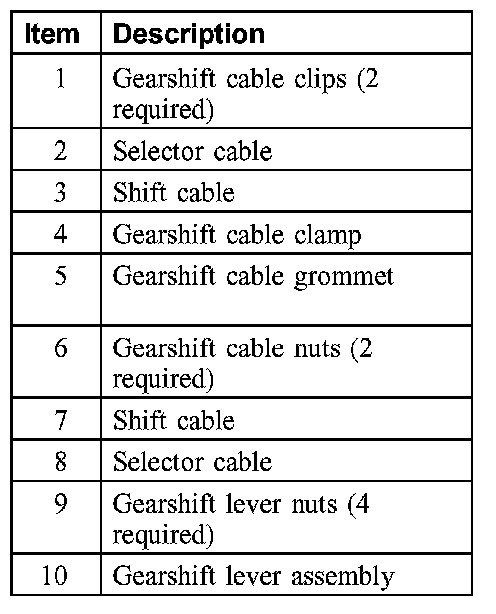 10. CAUTION: Carefully disconnect the cable from the shift lever assembly. Do not damage the shift cable retainers.