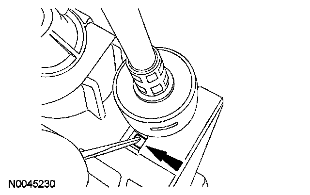 3. CAUTION: Carefully pry the retainer on the shift cable. Do not damage the shift cable retainers.