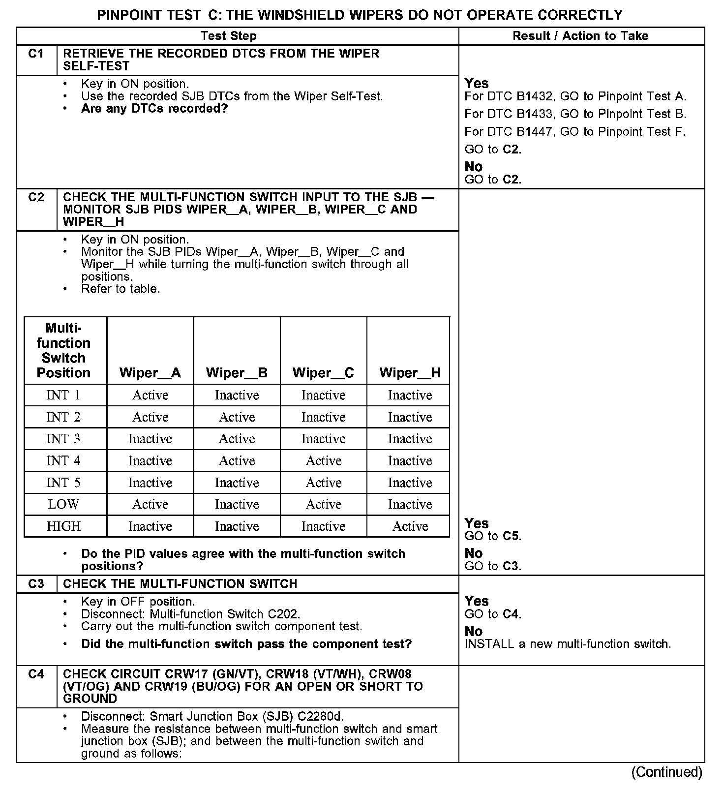 PINPOINT TEST C: THE WINDSHIELD WIPERS DO NOT OPERATE CORRECTLYC1-C4: