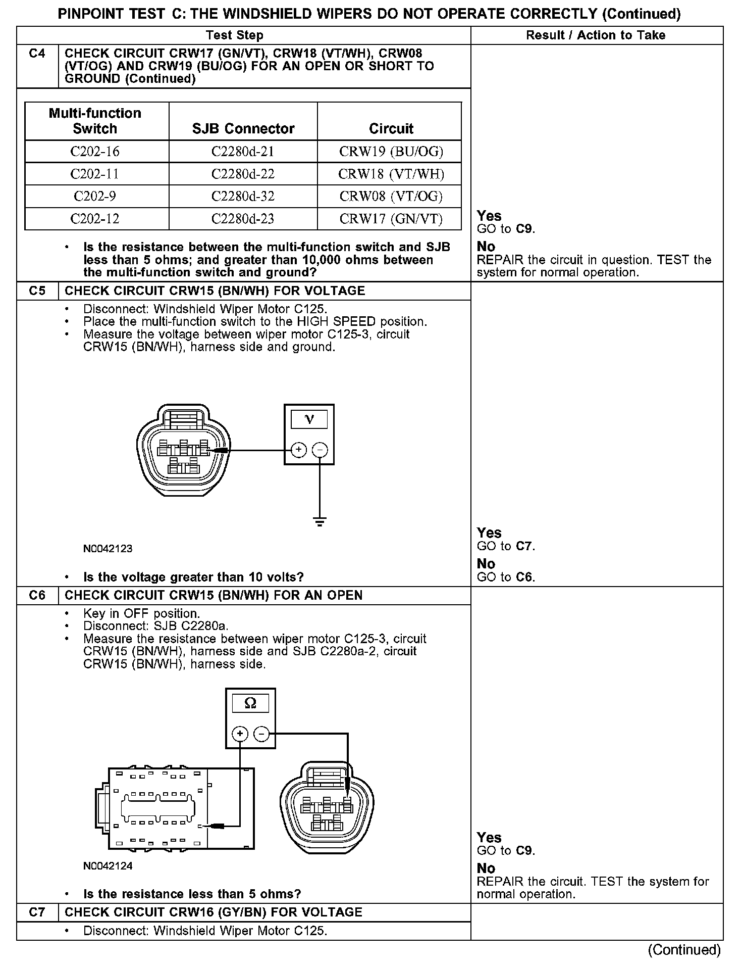 - Open in circuit CRW15 (BN/WH) or CRW16 (GY/BN)