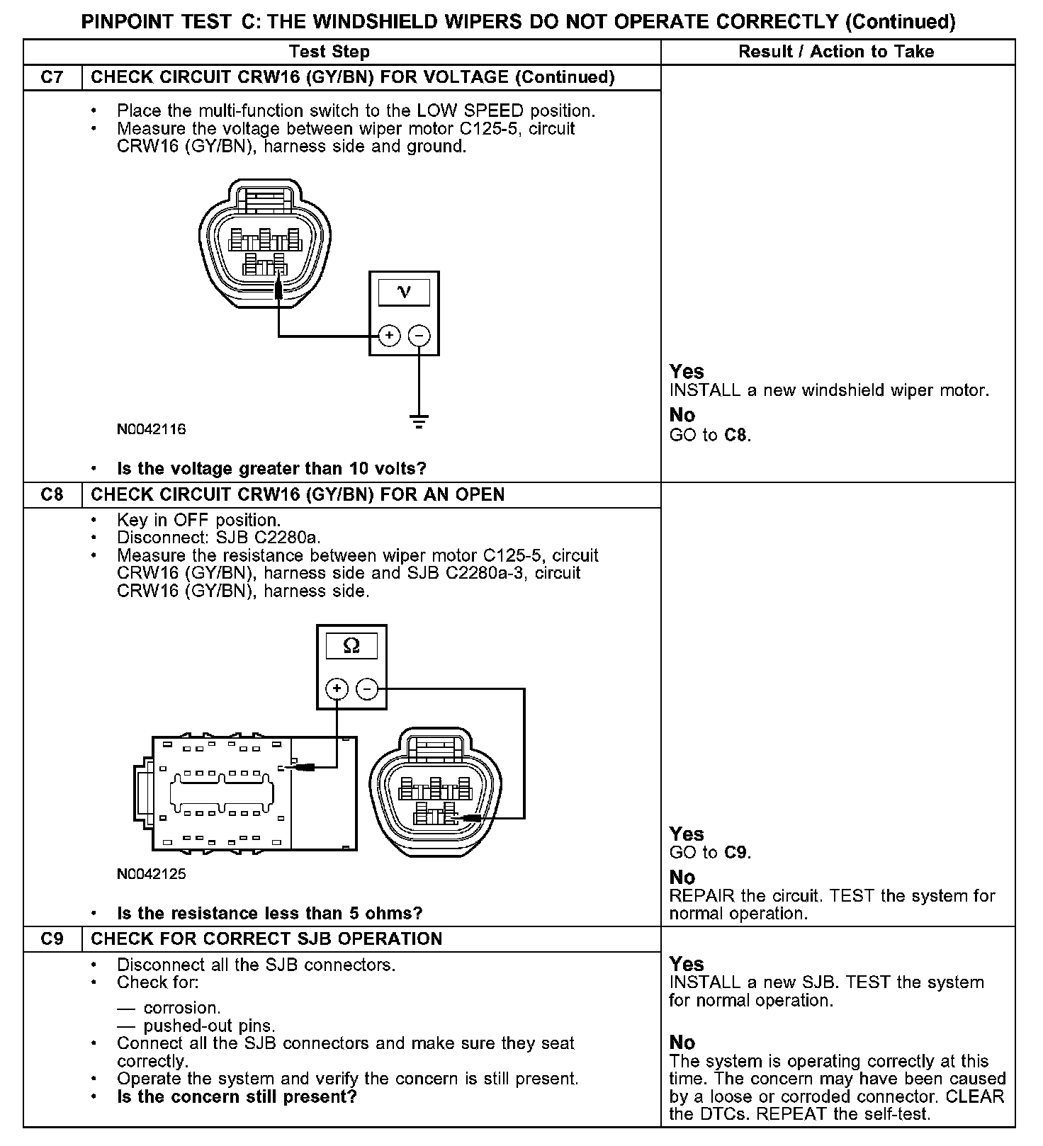 Test C: The Windshield Wipers Do Not Operate Correctly