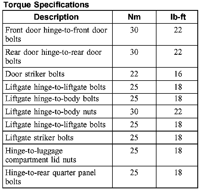 Doors, Hood and Trunk: Specifications