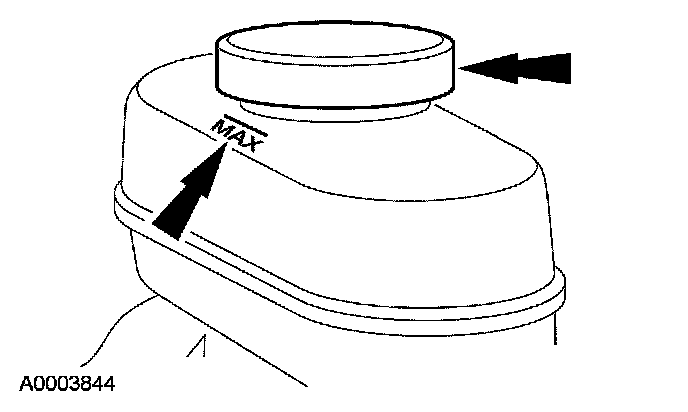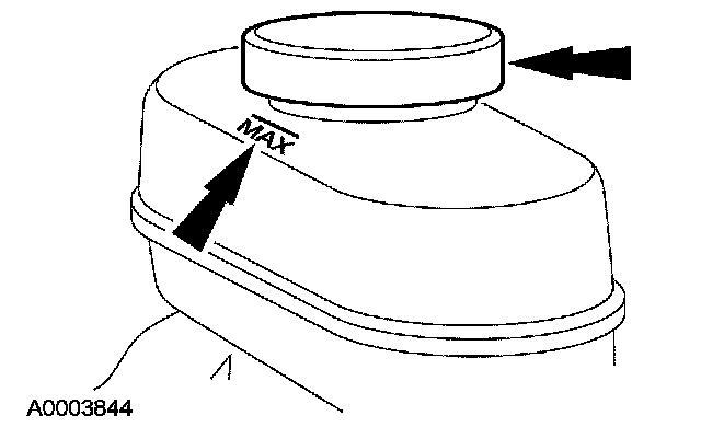 1. Clean all the dirt from the area, remove the brake master cylinder reservoir cap and fill the brake master cylinder reservoir with the specified brake fluid.