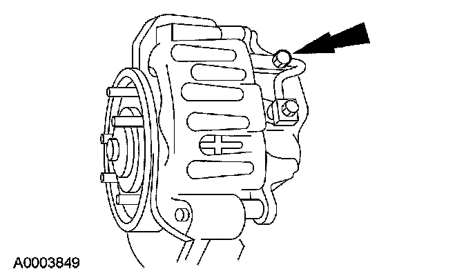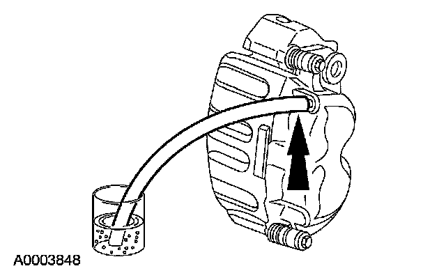 9. Loosen the RH front brake caliper bleeder screw until a stream of brake fluid comes out. While the assistant maintains pressure on the brake pedal, tighten the RH front brake caliper bleeder screw.