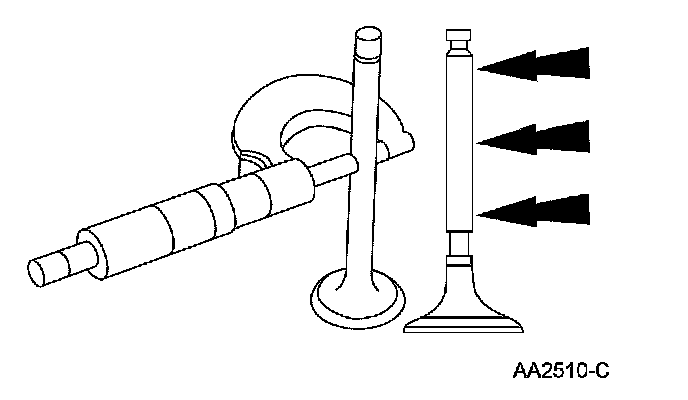 Measure the diameter of each intake and exhaust valve stem at the points shown. Verify the diameter is within specification.