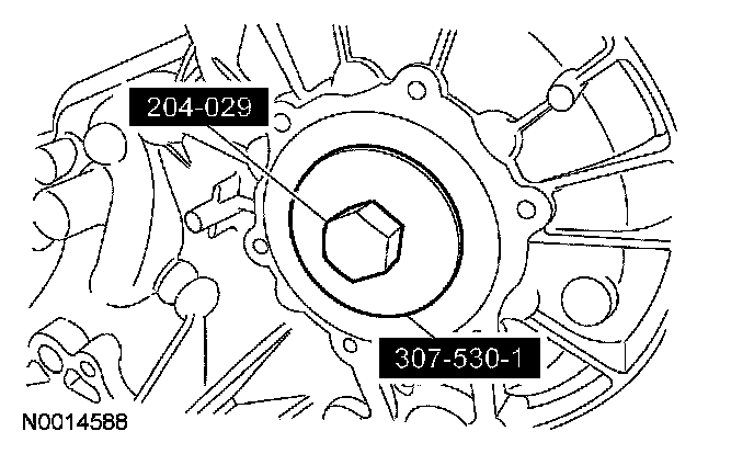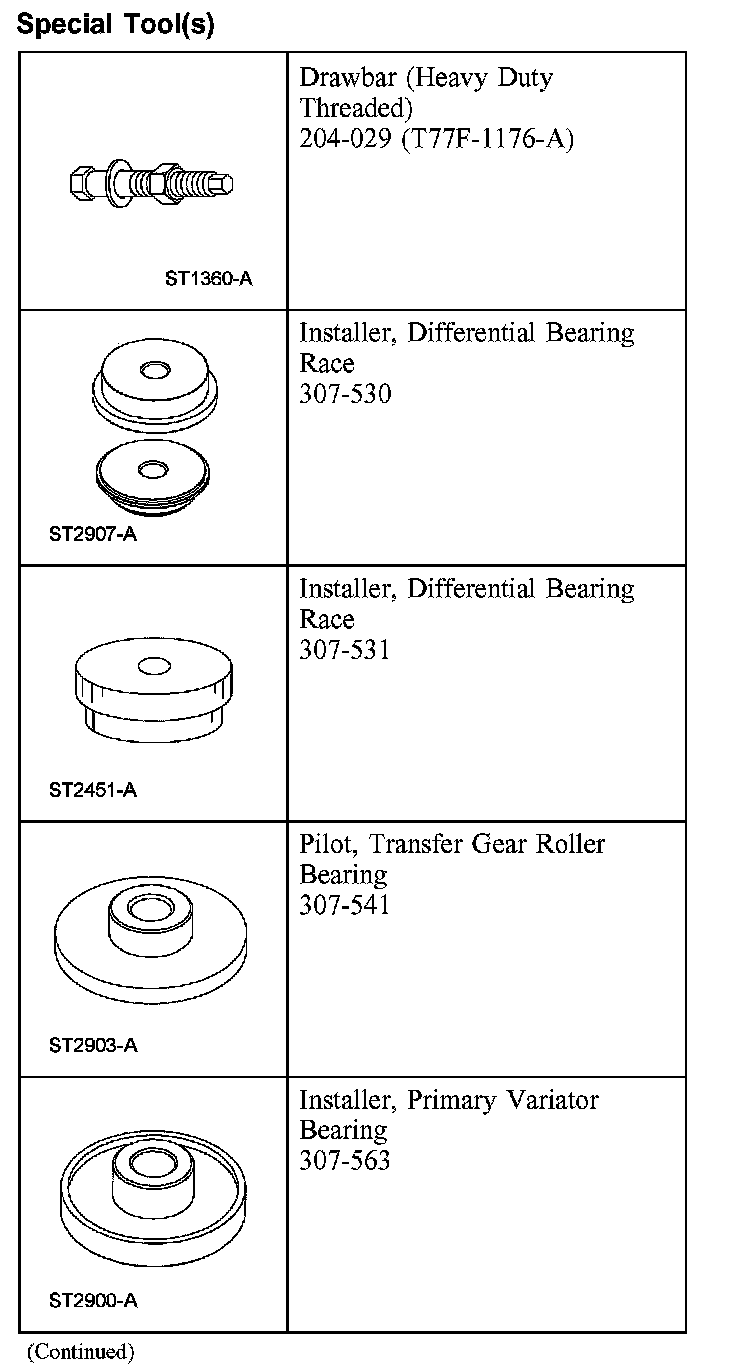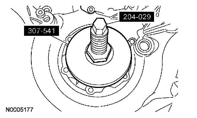 3. Install the remaining tools from the other side of the case. Using the special tool, install the bearing race.