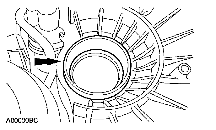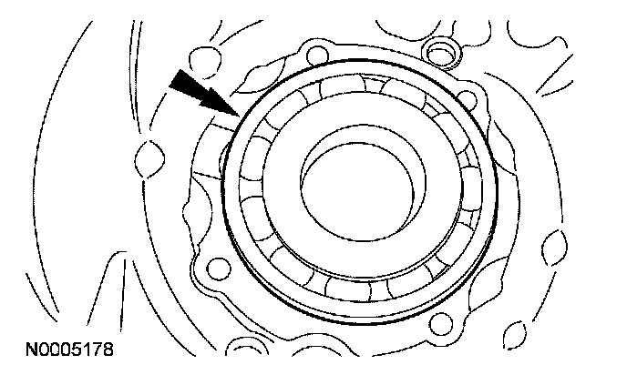 4. CAUTION: When positioning the bearing in the case, make sure that the bearing is correctly aligned with the case. Damage to the case will occur when the bearing is not aligned with the case.