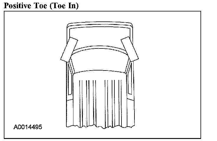 Wheel Alignment AnglesCamber and toe are adjustable on the front suspension system. Front camber is adjusted by rotating the front upper strut mount 180°. Indexing the front upper strut mount moves the camber by +0.5°. The front toe is adjusted by rotating the tie rod. Toe is adjustable on the rear suspension system. The rear toe is adjusted by rotating the toe link.