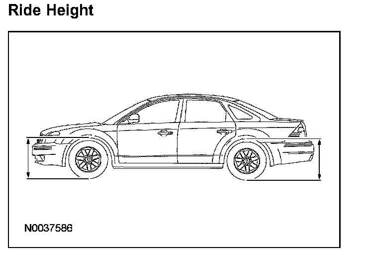 The vehicle ride height can be checked by measuring the distance between the lip of the fender(s) and the ground. The vehicle must be in a level, static ground position with full fluids and the fuel tank at least half full.