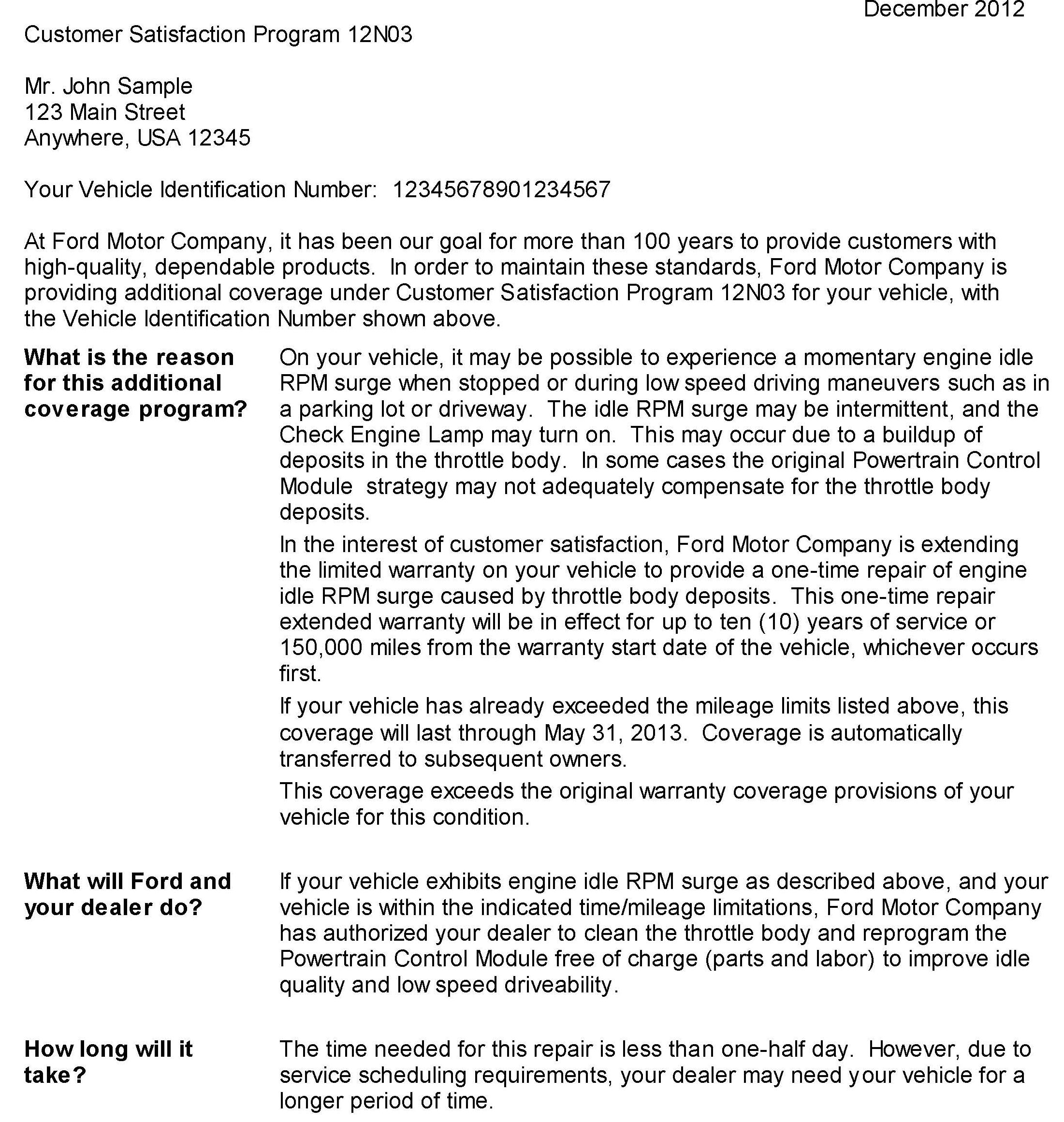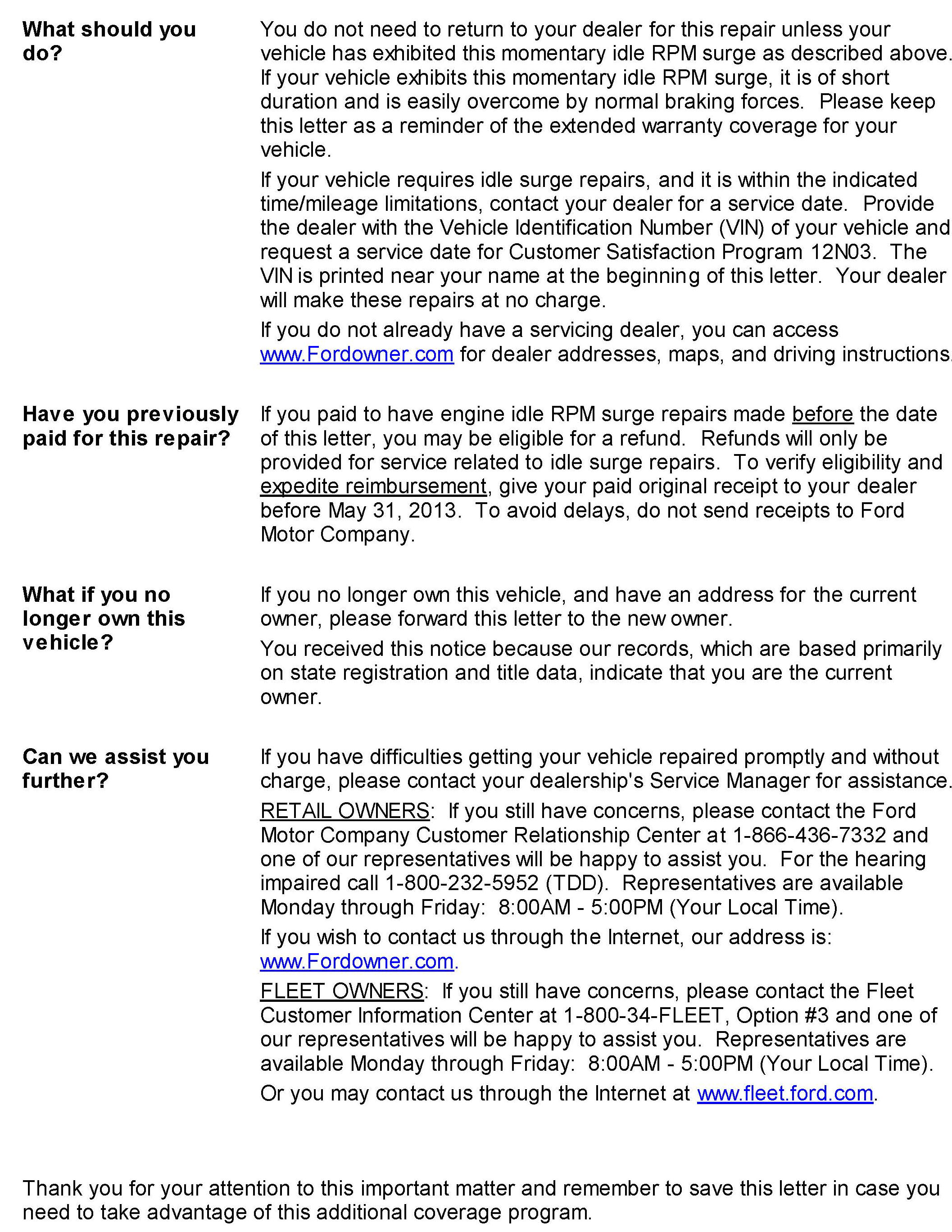 Campaign - Engine Idle RPM Surge Warranty Extension