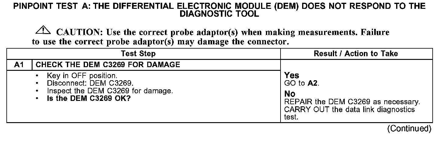 PINPOINT TEST A: THE DIFFERENTIAL ELECTRONIC MODULE (DEM) DOES NOT RESPOND TO THE DIAGNOSTIC TOOLA1: