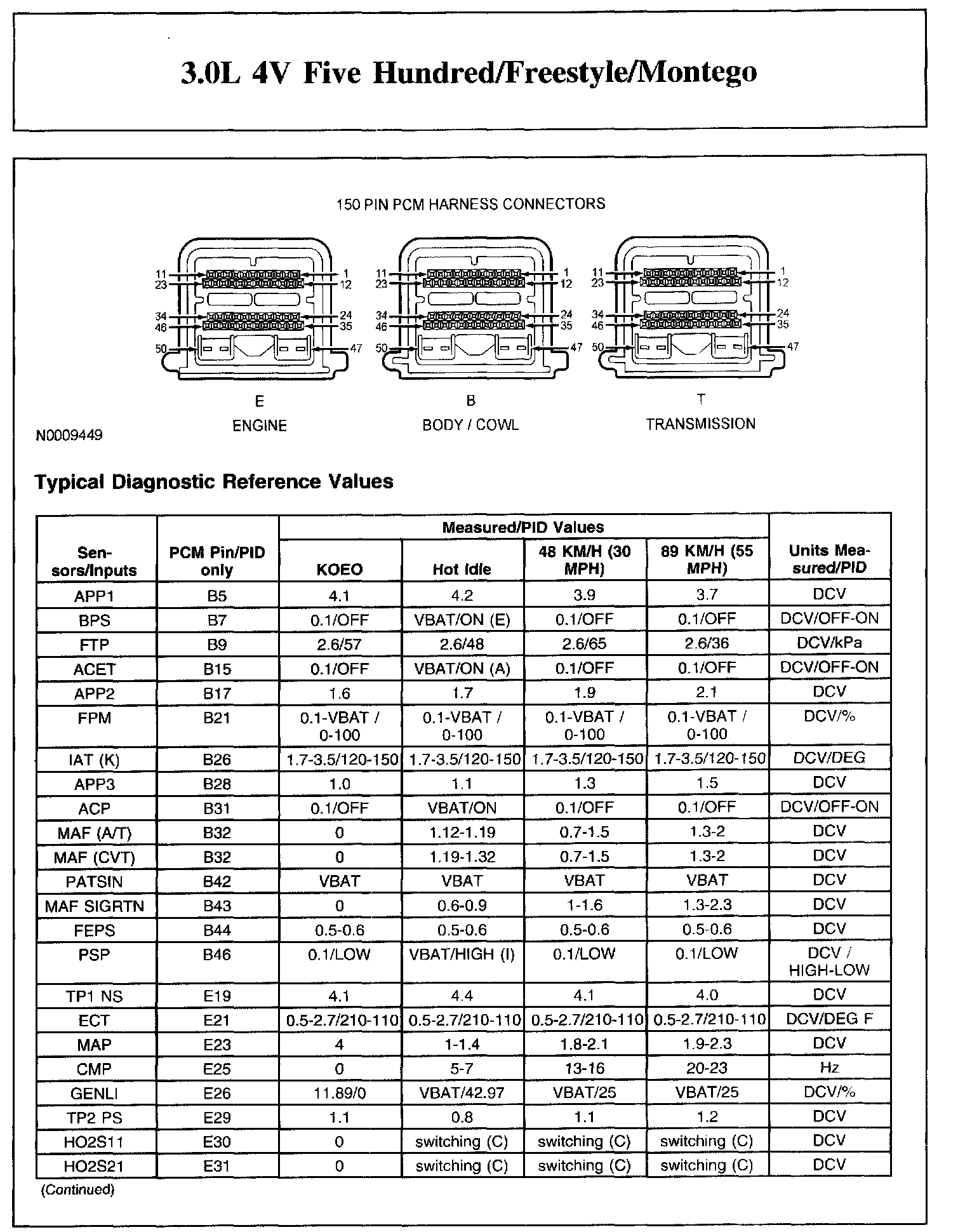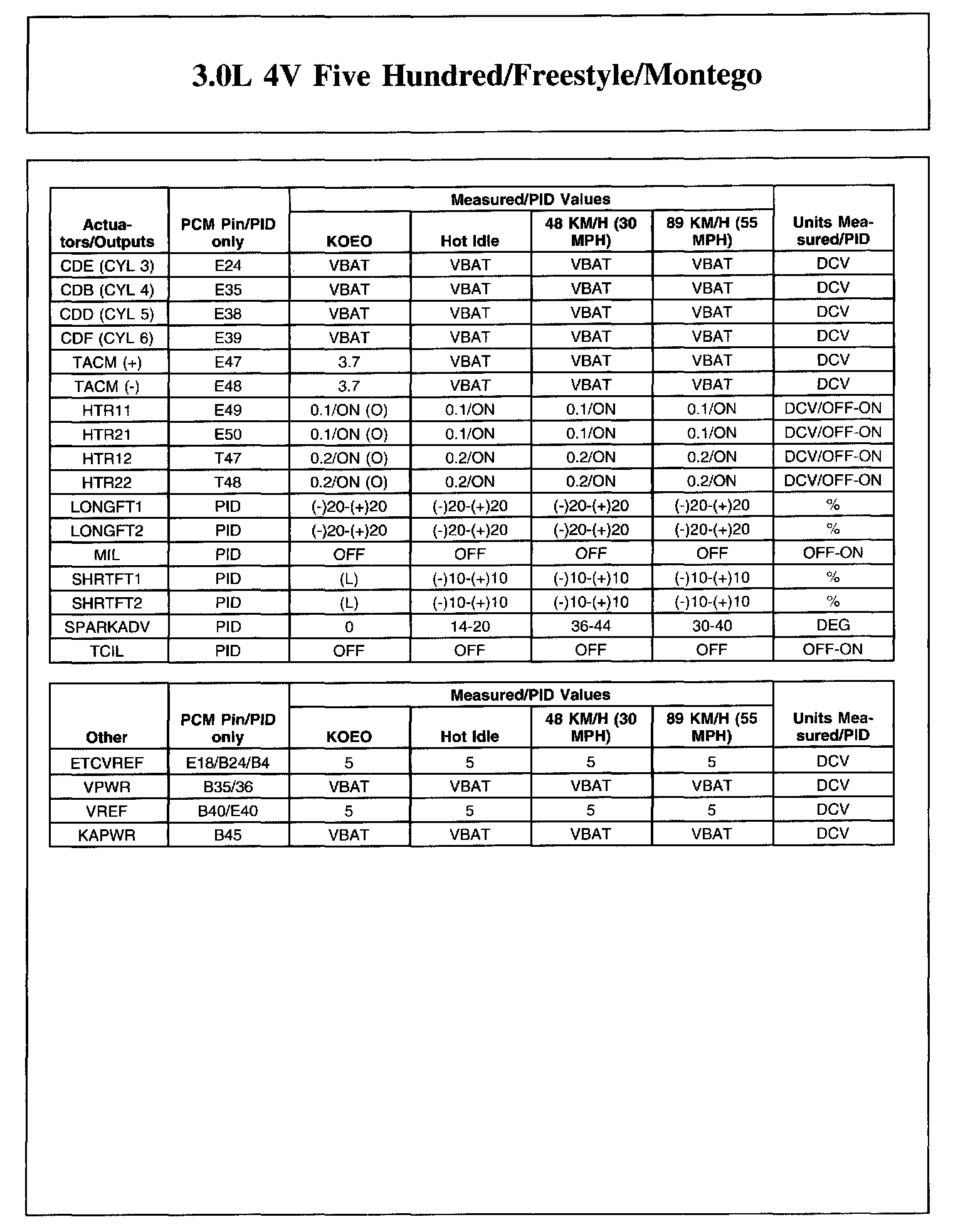 The Typical Diagnostic Reference Value Charts do not display fault parameter identifications (PIDs). These are PIDs which indicate a hard fault with the circuit. They display a value of YES or NO and are PIDs ending with the letter F.
