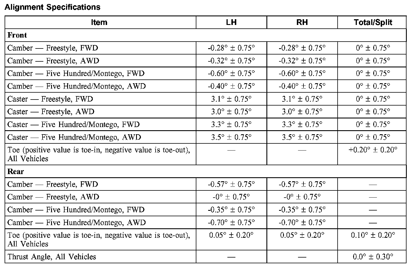 Montego AWD V6-3.0L VIN 1