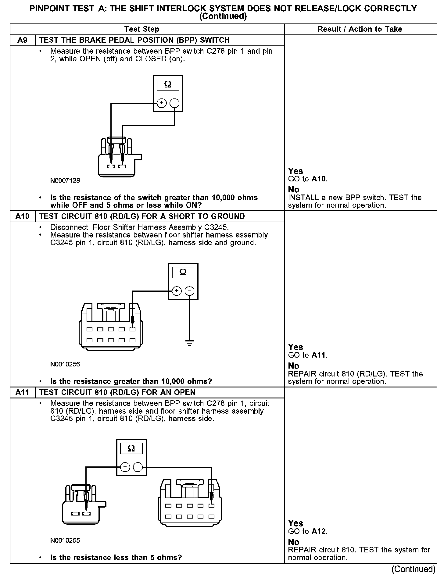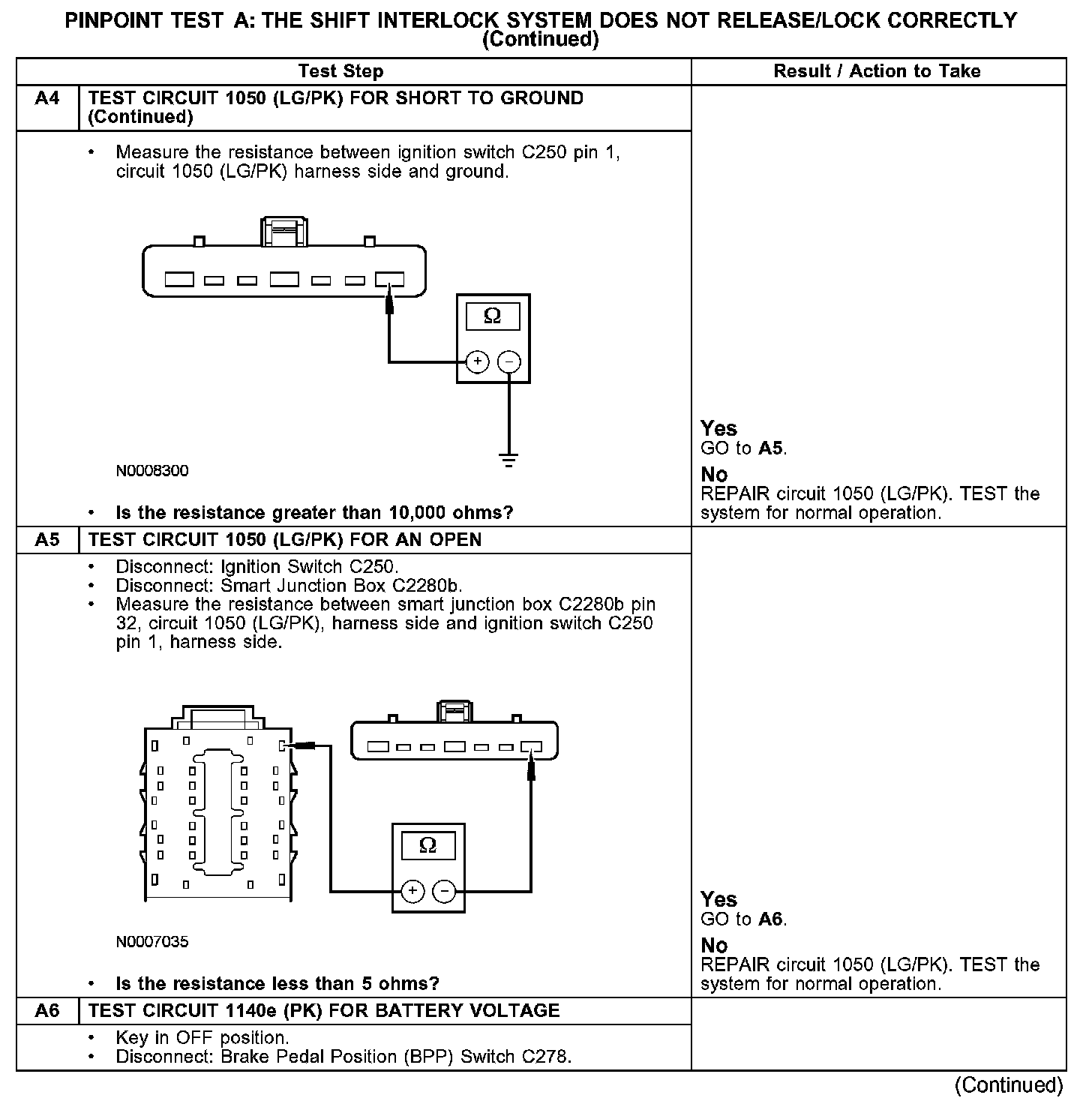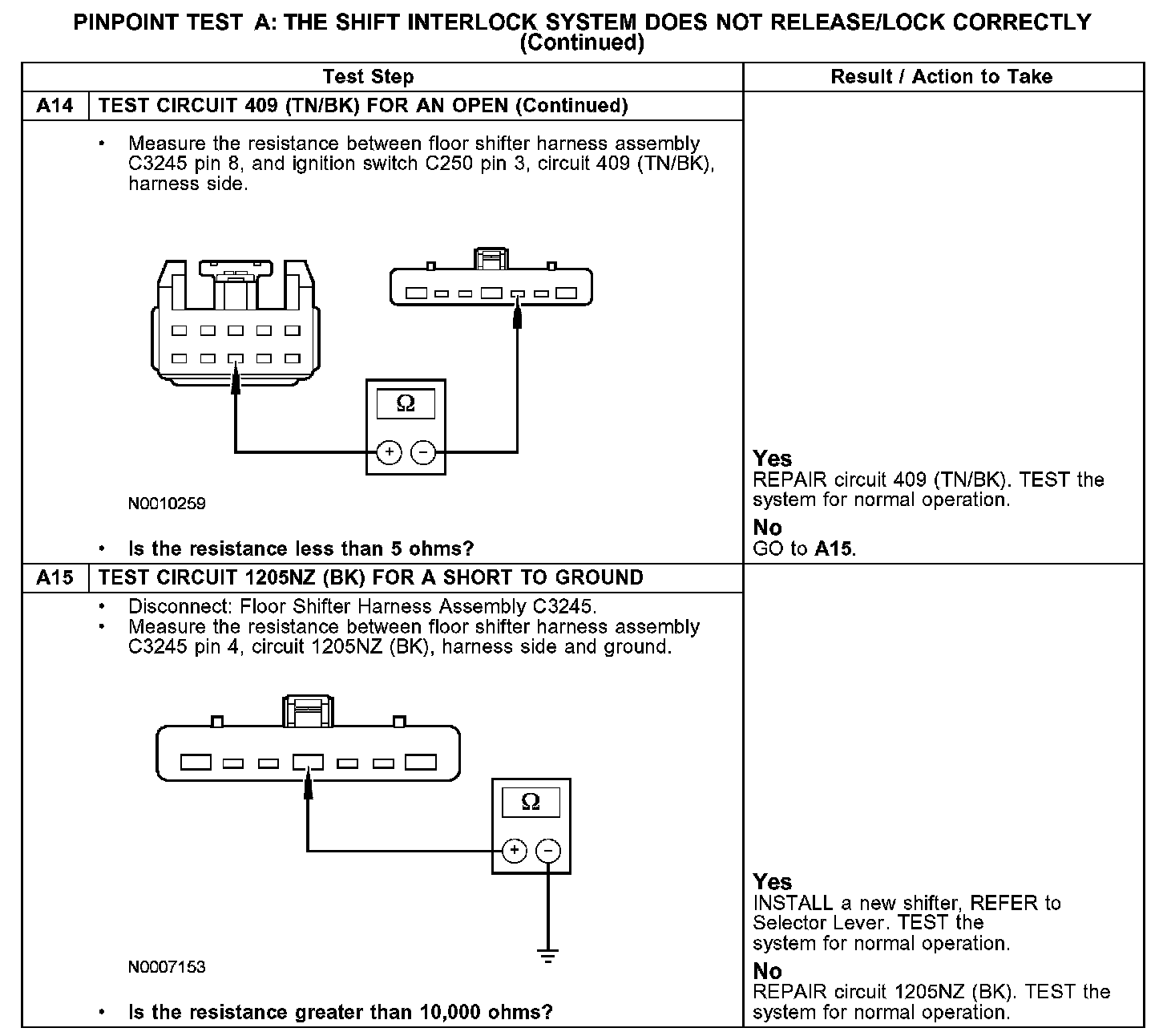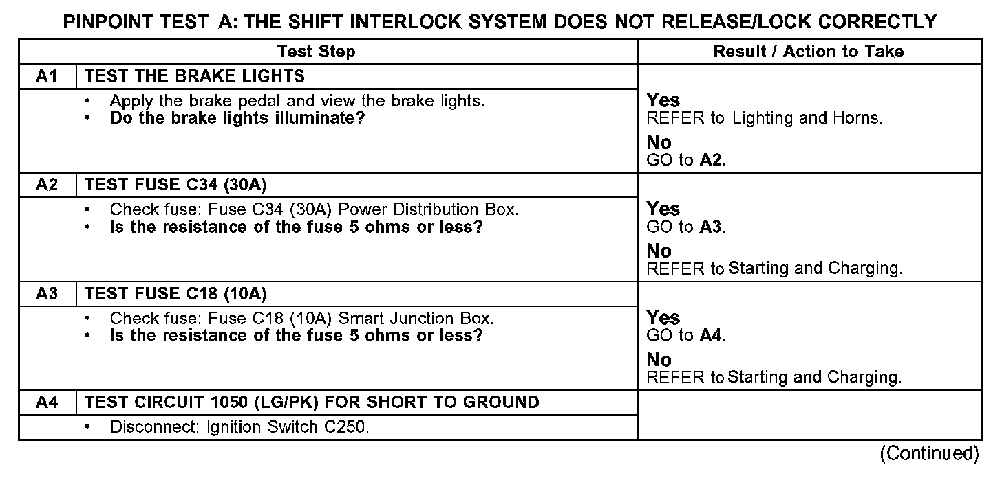 Test A: The Shift Interlock System Does Not Release or Lock Correctly