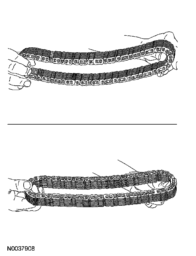 11. Inspect the primary and secondary variator chain mating surfaces for nicks and gouges. Inspect the variator chain for damage. If any damage is indicated, the installation of all 3 variator components will be required.