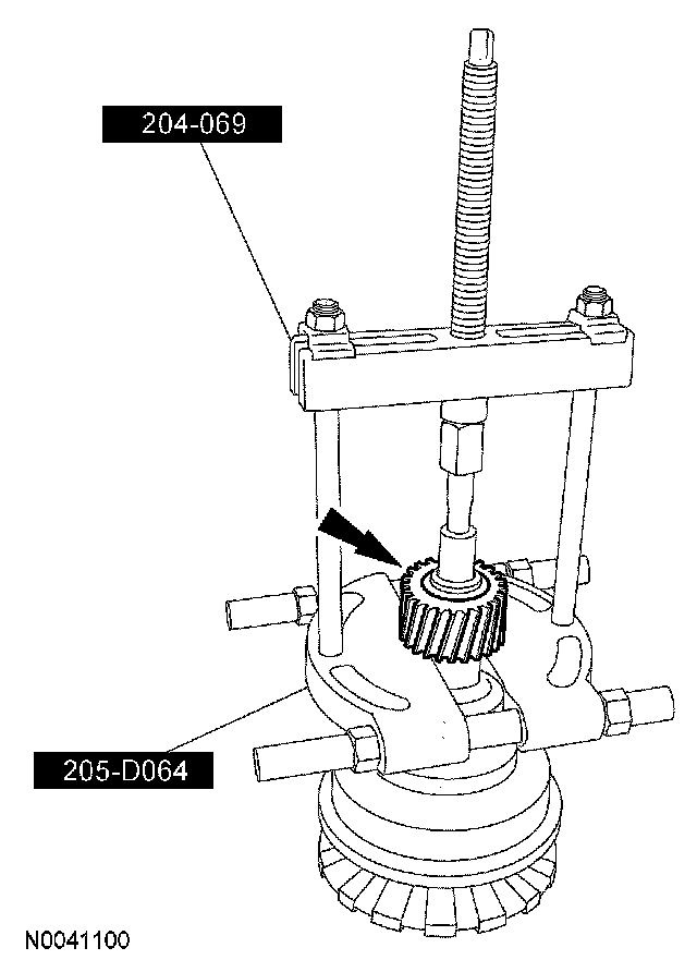 13. Using the special tools, remove the spur gear.