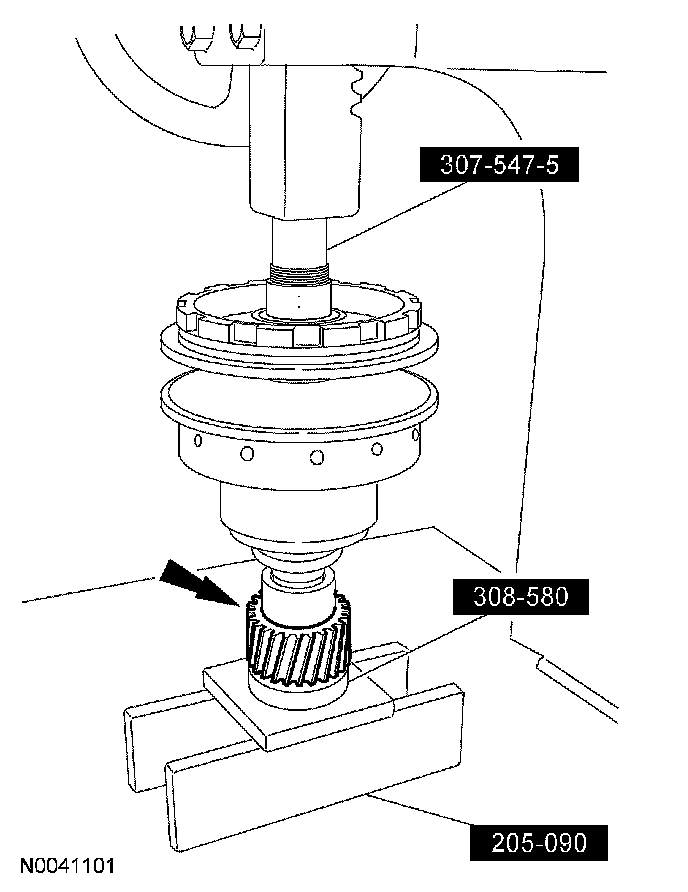 1. Using the special tool, install the spur gear onto the variator assembly.