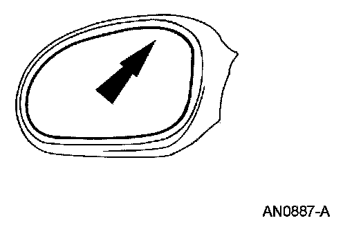 1. Position the upper edge of the exterior rear view mirror glass to its maximum outward travel.