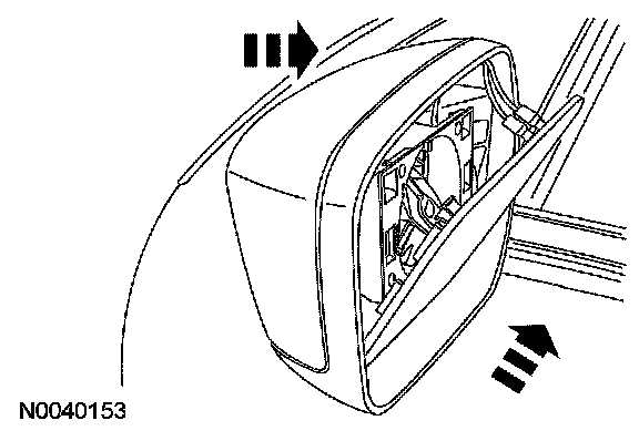 - Press the upper edge of the mirror glass into the upper rear view mirror motor retainers.