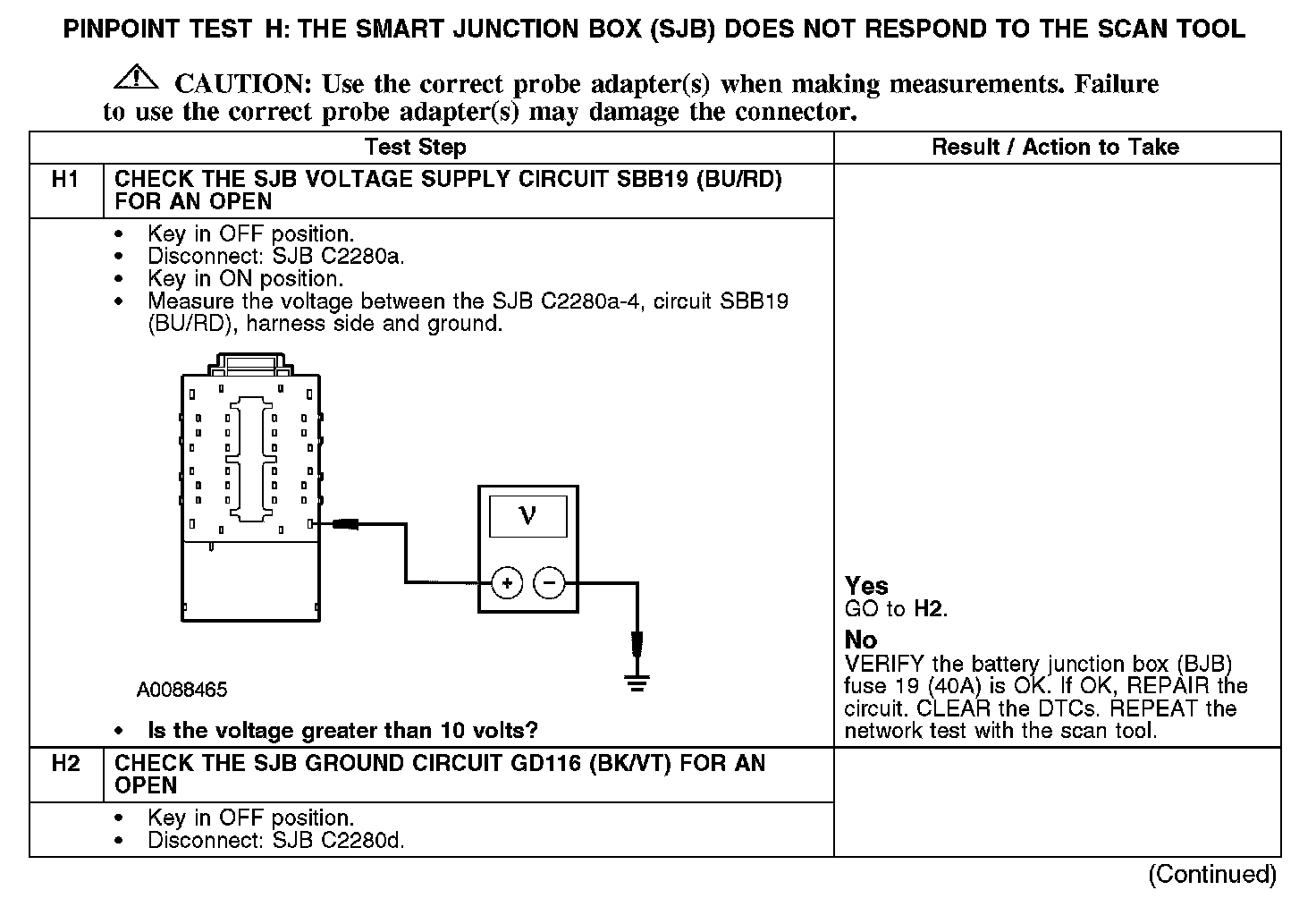 PINPOINT TEST H: THE SMART JUNCTION BOX (SJB) DOES NOT RESPOND TO THE SCAN TOOLH1-H2: