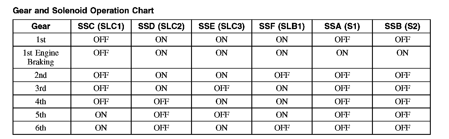 Gear And Solenoid Operation Chart: