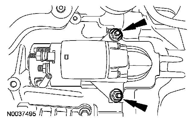 9. Tighten the starter motor bolts to specification.