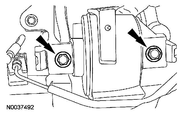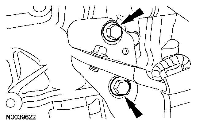 6. Install the transmission lower mount to the transaxle. Do not tighten the bolts at this time.