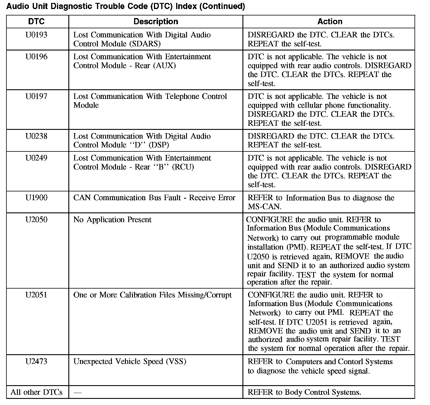 B2656-B2965 / C1992 / P0812 / U0140-U0159: