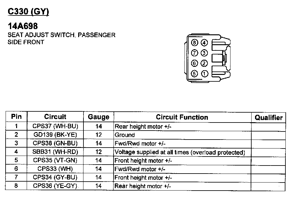 Seat Adjust Switch, Passenger Side Front
