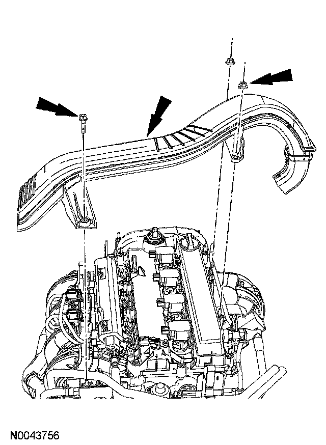 3. CAUTION: Failure to tighten the catalytic converter manifold nuts to specification before installing the converter bracket bolts will cause the converter to develop an exhaust leak.