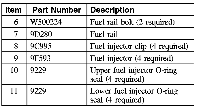 10. Remove the 4 fuel injector retainer clips and the fuel injectors.
