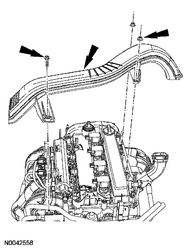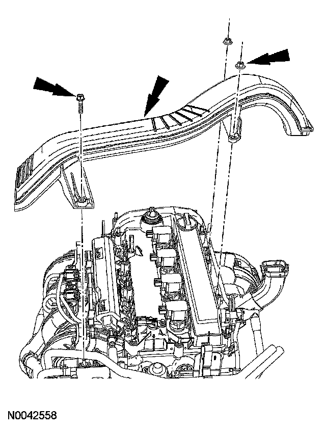 9. Remove the fuel rail and fuel injectors as an assembly.