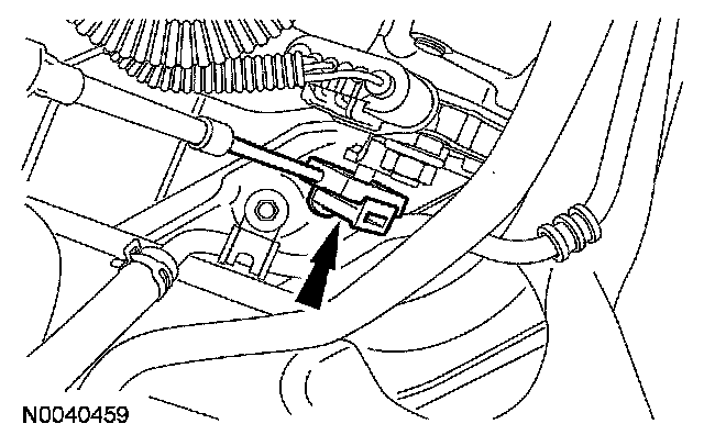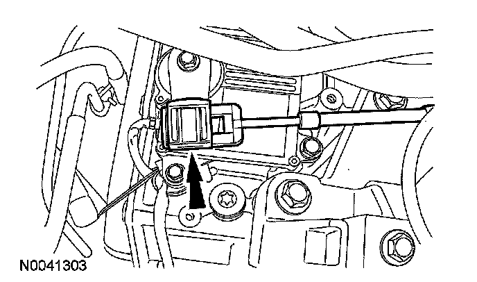 With the adjuster locking tab released connect the selector lever cable end to the manual lever.