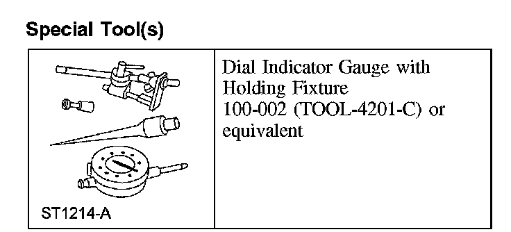 1. Use a Dial Indicator Gauge with Holding Fixture to measure camshaft end play.